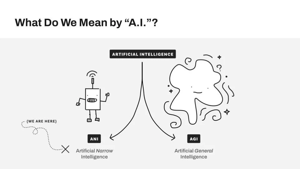 Almost all of the AI progress that we’re seeing today is Artificial Narrow Intelligence (ANI), whereas Artificial General Intelligence (AGI) is the eventual goal.
