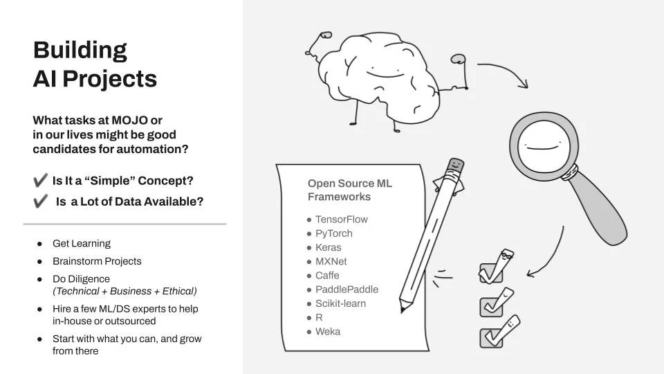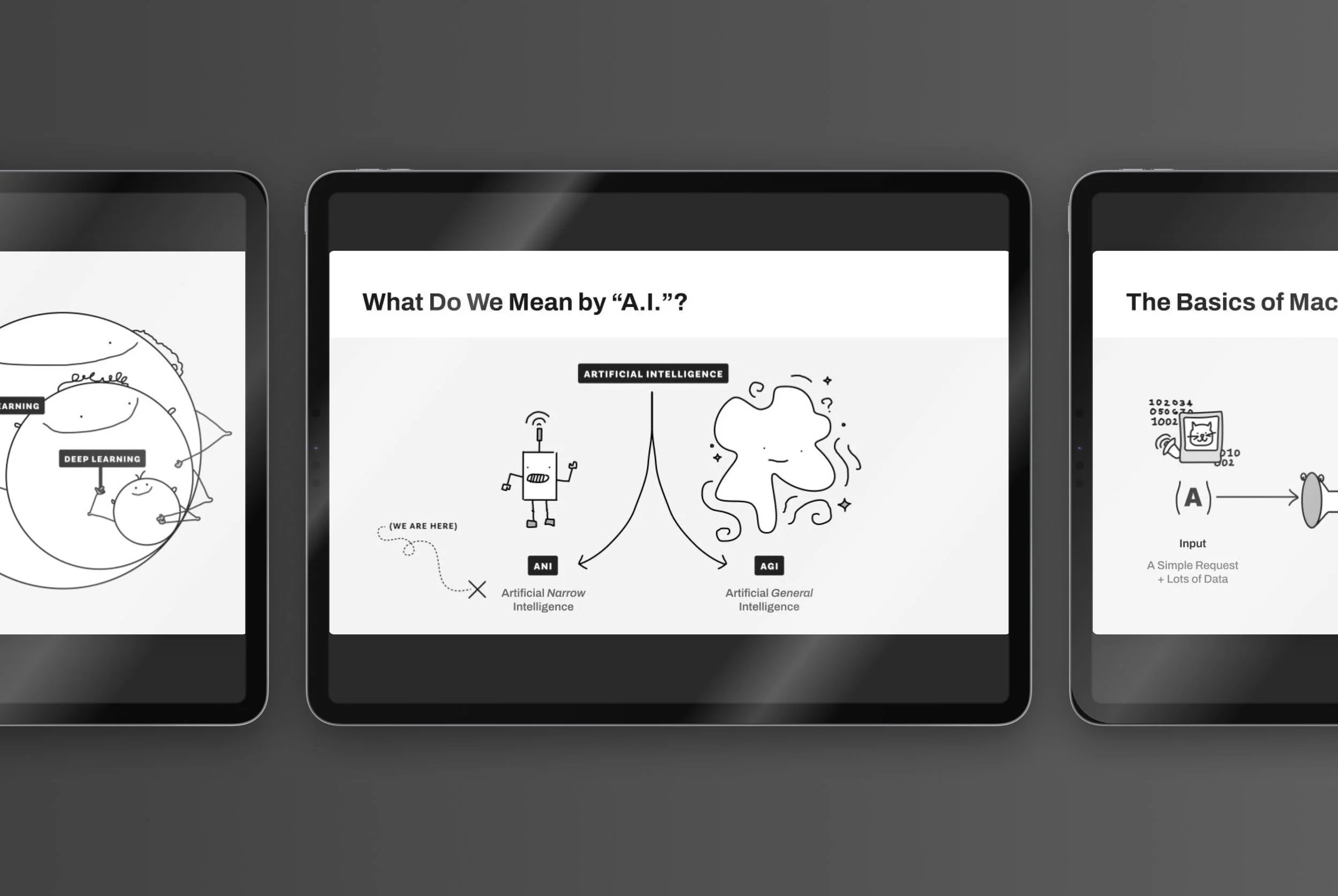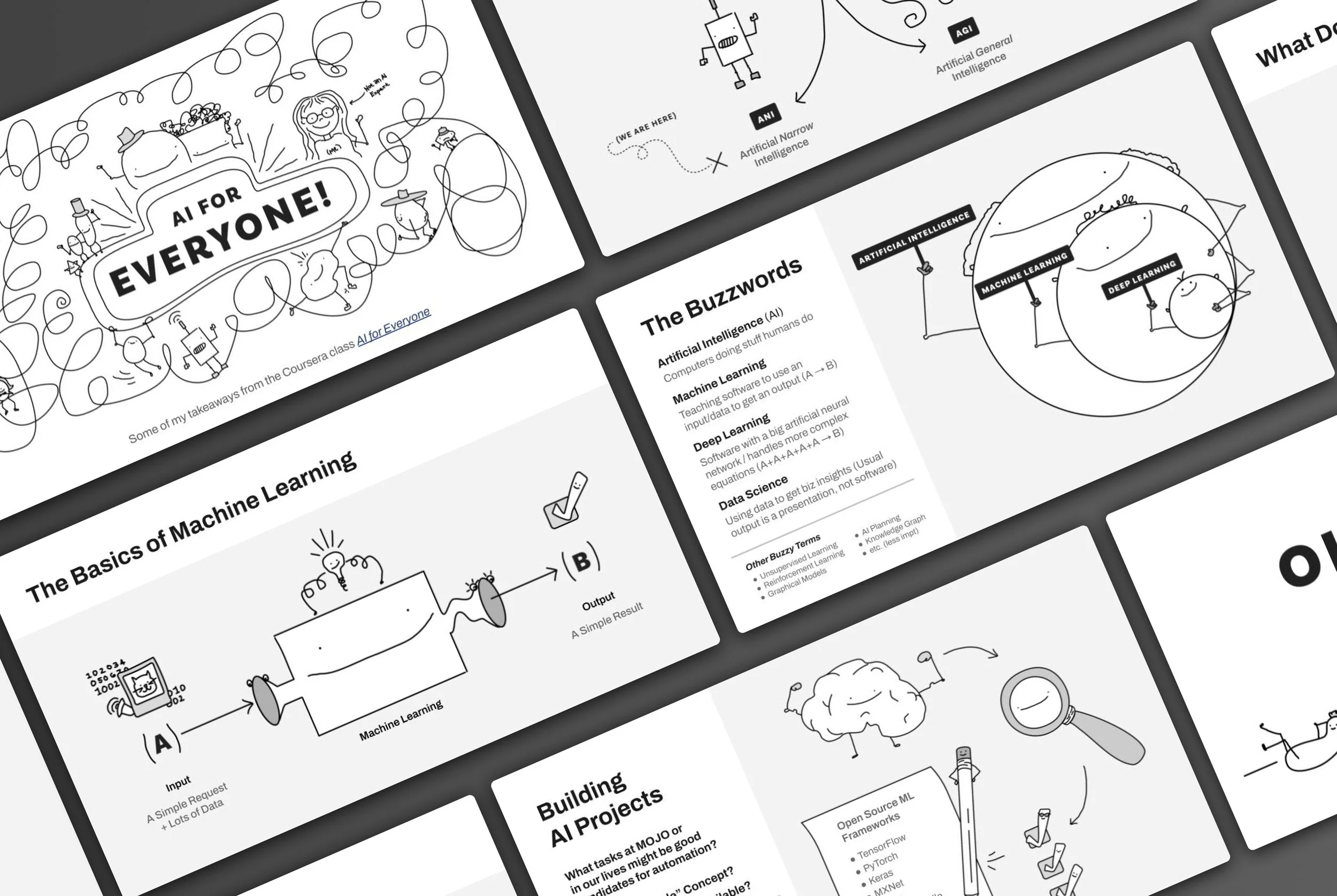 The class taught me the basics of AI, the hot buzzwords, where things are today and where they’re going. In addition, though, Andrew walked me through the process of creating AI, and the general idea of how these types of projects and teams function. In my excitement to help steward this type of thinking within my own team, I was encouraged to share my takeaways of the course with my colleagues.