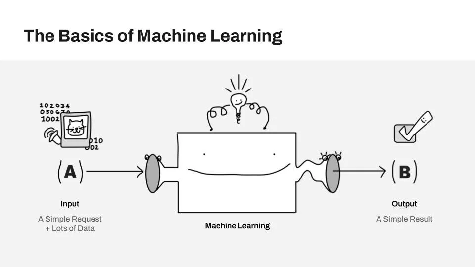 Machine Learning - Teaching software to use an input/data to get an output (A → B)